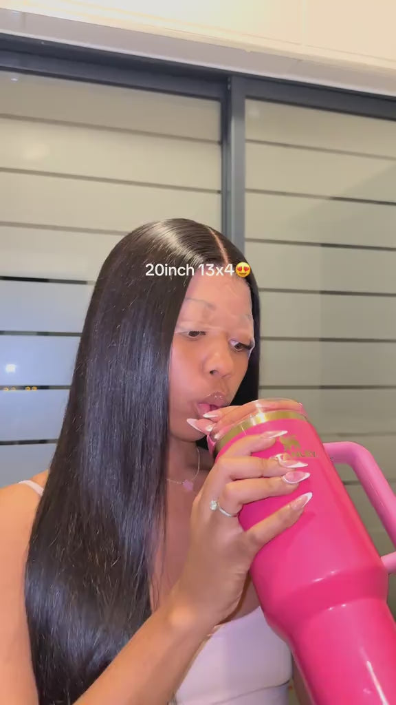 Go Glueless 20” 4x4 Straight Human Hair Wig – HD Transparent Lace Closure, 180% Density, Effortless Style for Women